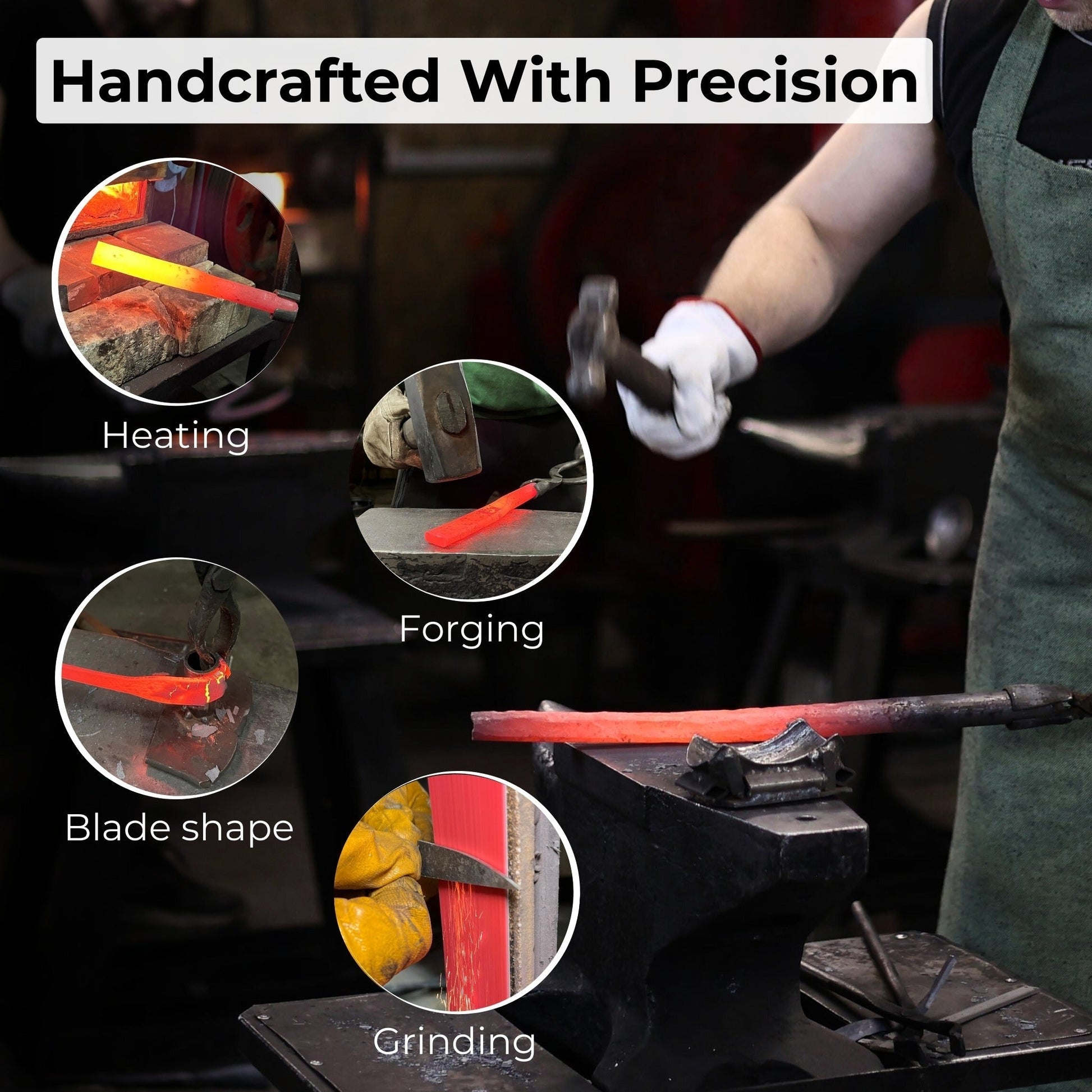 ✔️ Blades: Hand-forged from 52100 high-carbon steel (58–59 HRC) for sharpness, durability, and reliable edge retention.