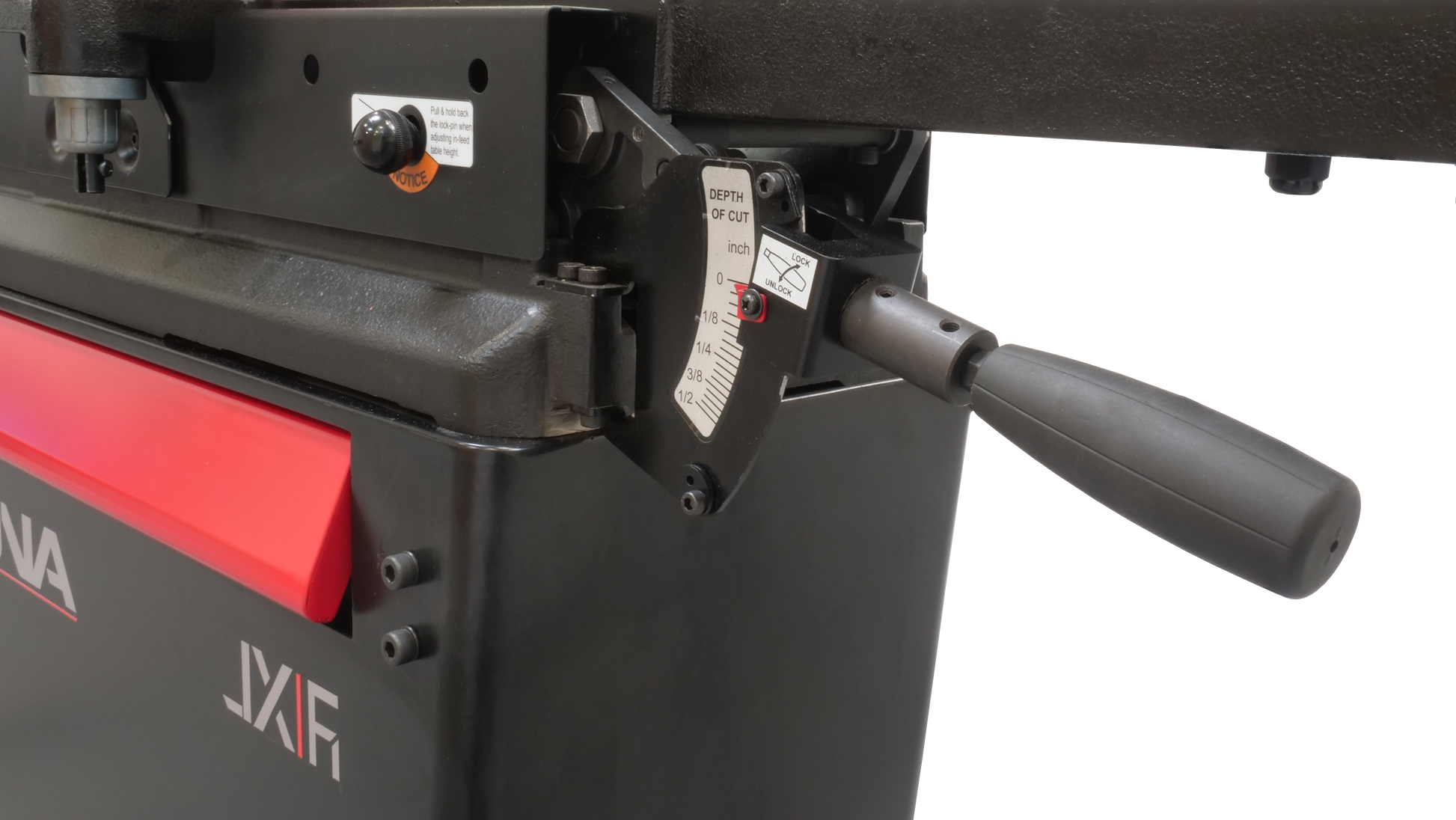 - Parallelogram Table Adjustments – Table depth adjustments travel along an arc to keep the same distance to the cutterhead through its travel
