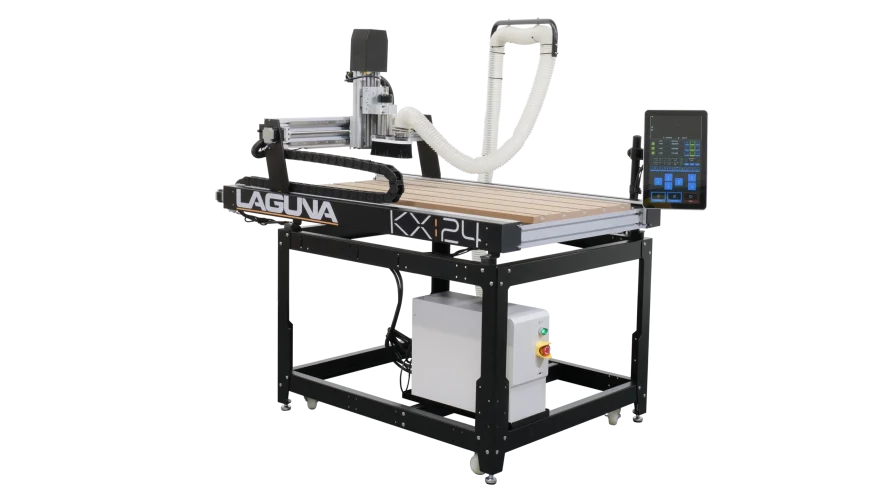 The KX:24 is the latest CNC machine from Laguna that is designed with luxury features at an affordable price point. The KX:24 is designed to machine a range of materials including wood, plastics, non-ferrous metals, foam, and more. Capabilities include 2D and 3D cutting, carving, and shaping. The 24” x 48” work area provides plenty of workspace for a wide range of products. The work table includes MDF inserts which can be resurfaced and replaced as needed along with embedded T-slots for material clamping anywhere across the work surface. Standard luxury features include an ultra-quiet CNC spindle with variable speed range up to 24,000 RPM. The KX:24 is controlled by an easy-to-use 15.1” touchscreen with graphical user interface. This large touchscreen displays all of the machine controls and status in a simple format. Automatic tool touch-off ensures that the bit is perfectly set for each job.