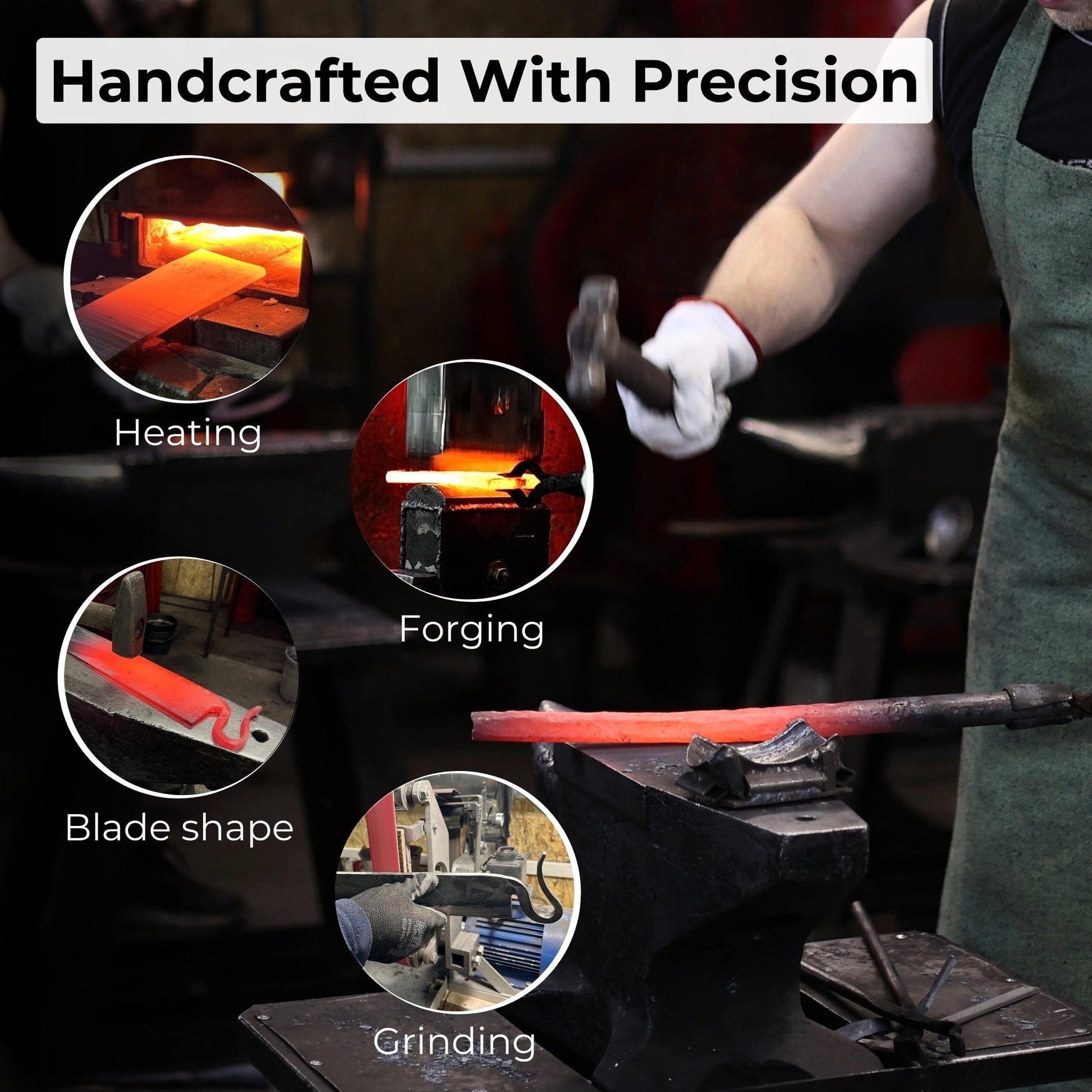 ✅ Hand forged from 52100 (ASTM A295) hardened carbon steel.