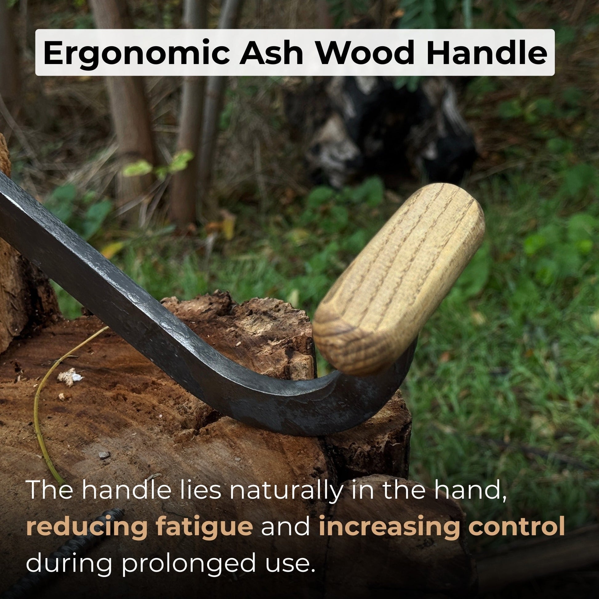 The long forged handle lever really helps transfer the force so you don't have to press as hard to cut large pieces. The handle is made of ash, polished and coated with natural linseed oil, which provides a comfortable and secure grip for both right-handers and left-handers. Ergonomic design ensures stability and ease of use during long-term use.