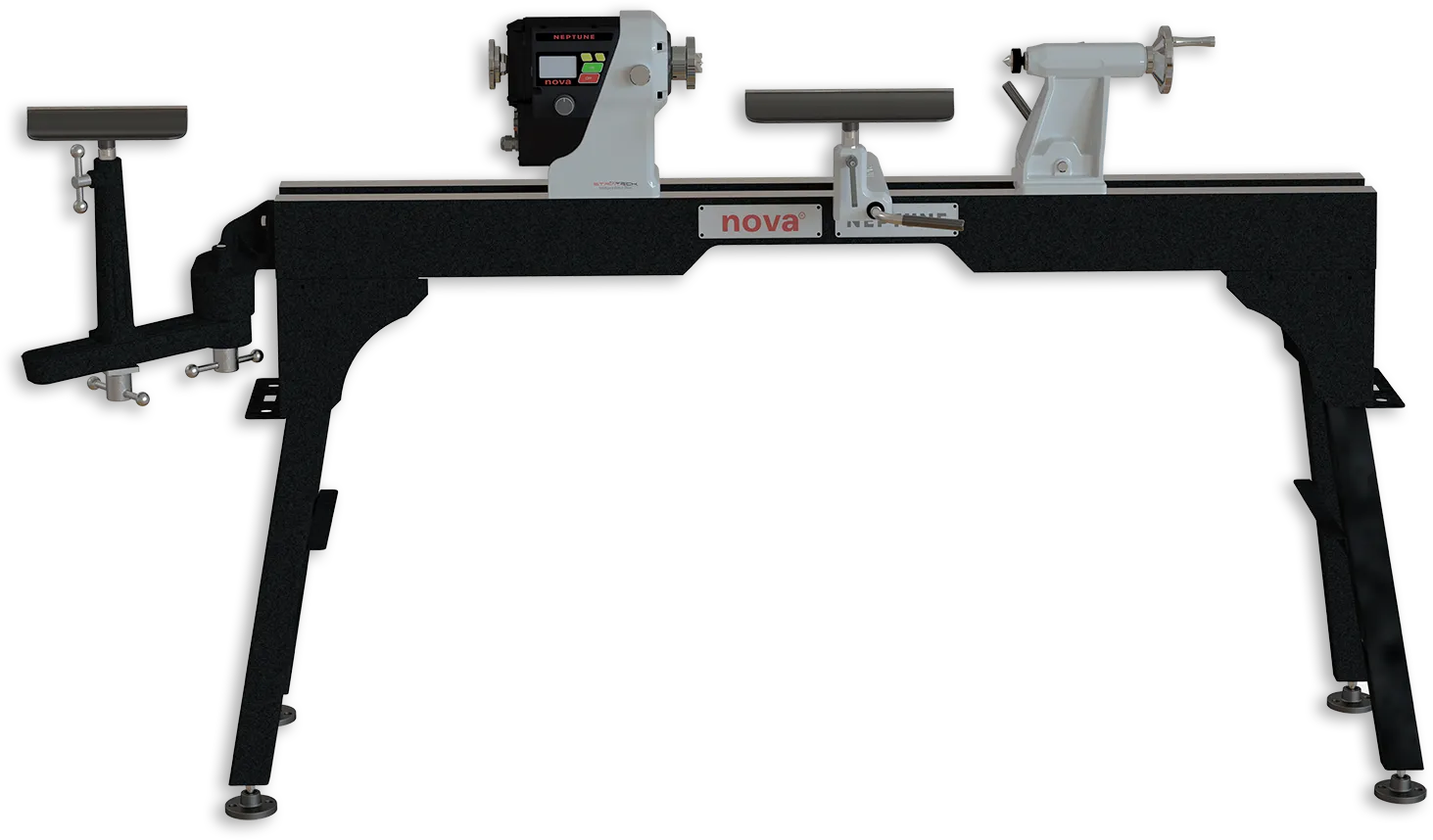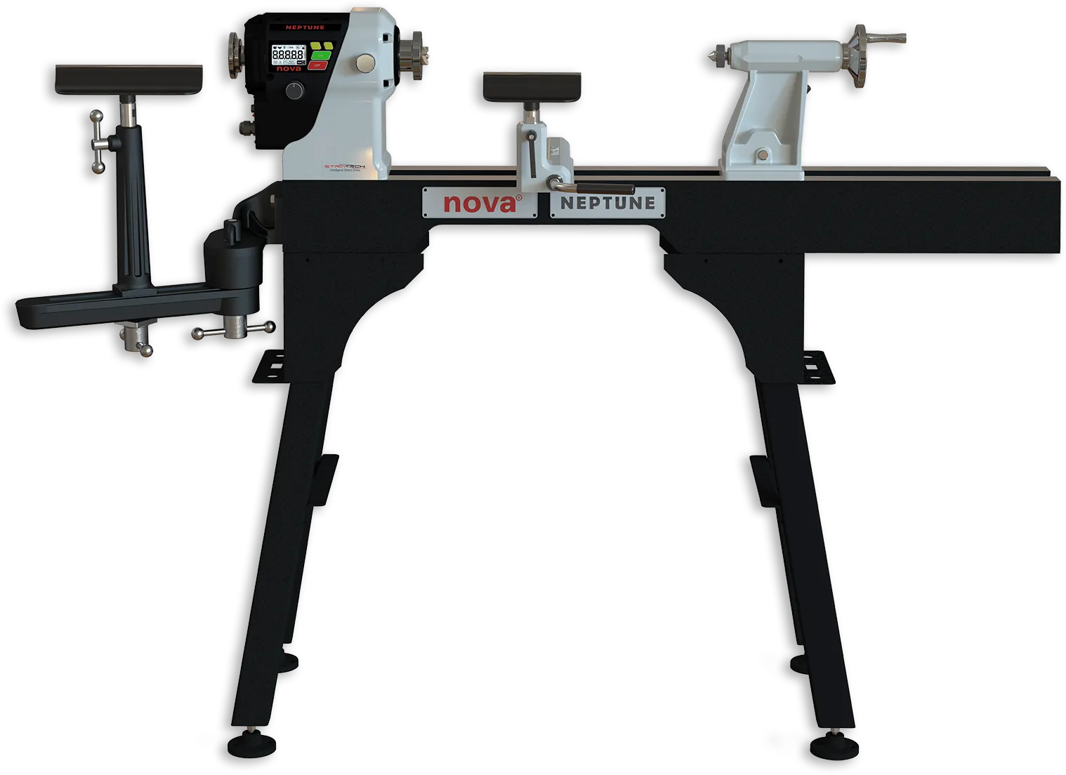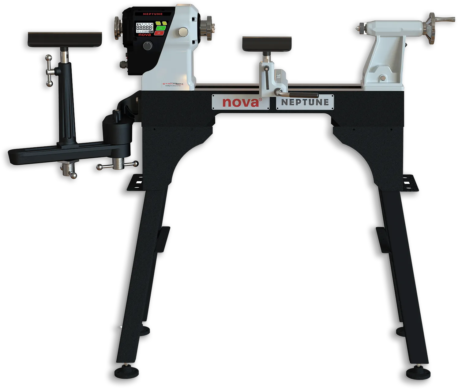 Experience all the features of a full-size DVR machine on benchtop lathe with the NOVA Neptune 15″ Digital Direct Drive Lathe! The powerful and intelligent 1.5HP direct drive digital motor system from Striatech adds a wide range of features paired with its innovative and versatile design redefines what a mid-size lathe can do. Neptune goes far beyond any other lathe in its class: just a twist of a knob and speed can be adjusted from 100 rpm up to 4,000 rpm with no sacrifice in torque. Neptune’s outstanding machine features and specifications include a 360-degree pivoting and sliding head, a 15” (381mm) over bed swing with 18” (457mm) between centers. Whether you’re turning large projects or small, Neptune’s unparalleled, smart motor technology from Striatech has an easy-to-use, software-driven controller and provides the ultimate in smooth performance, intelligent control, and power under load.