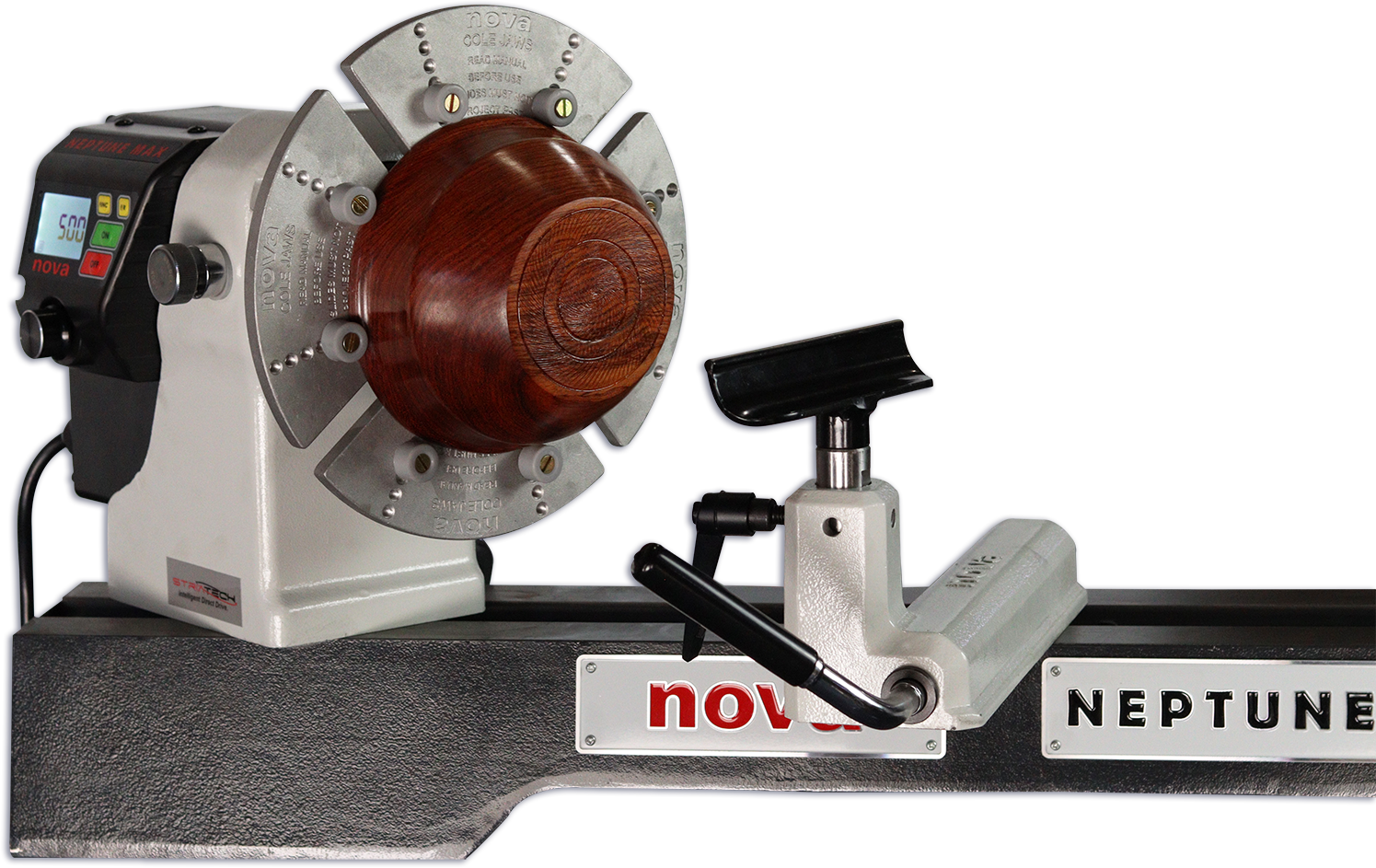 Neptune Max, the new 1.5HP lathe with an intelligent direct-drive digital motor from Straitech. This floor version of our Neptune includes the heavy duty floor stand and extends the between centers to 28″. Neptune Max goes far beyond any other lathe in its class: just a twist of a knob and speed can be adjusted from 100 rpm up to 4,000 rpm with no sacrifice in torque. RPM under 100 is not recommended for turning and is to be used as a drying or sanding speed only. Neptune Max’s outstanding machine features and specifications include a 360-degree pivoting and sliding head, a 15” (381mm) over bed swing with 28” (711mm) between centers. Whether you’re turning large projects or small, Neptune’s unparalleled, smart motor technology from Striatech has an easy-to-use, software-driven controller and provides the ultimate in smooth performance, intelligent control, and power under load.