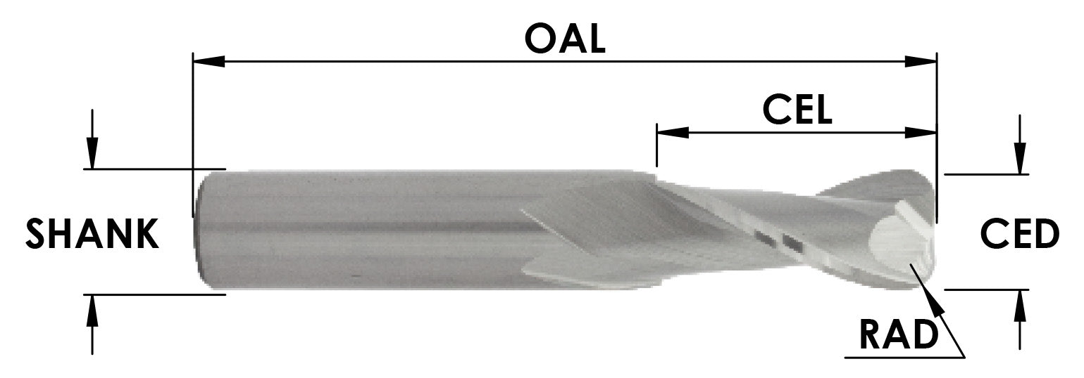 Sc Cove Nose Spiral, 2Fl, 3/8 Cd X 1 Cl X 3/8 Shk, 3 Oal : 3/32 Rad