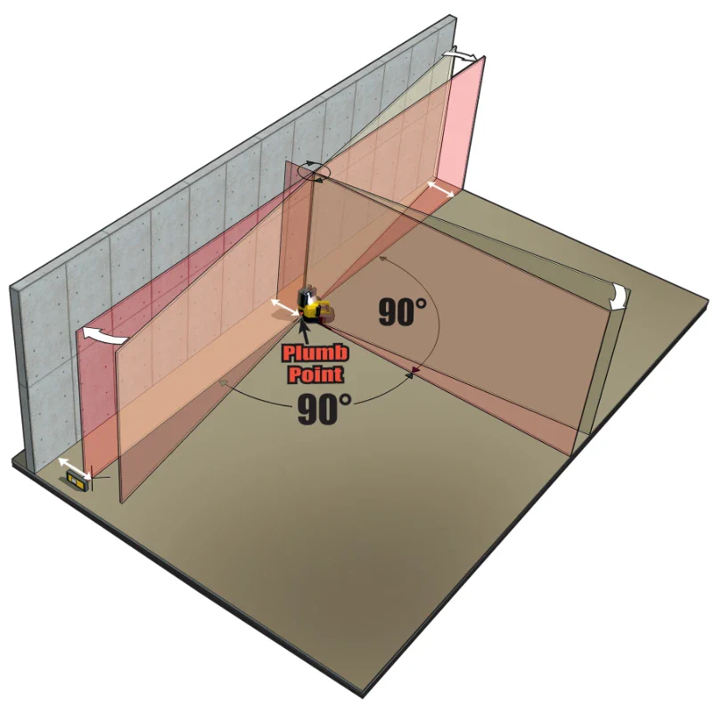 - Framing - layout wall positions at the push of a button. Quickly establish square, even when the slab or foundation you're working on is out of square.