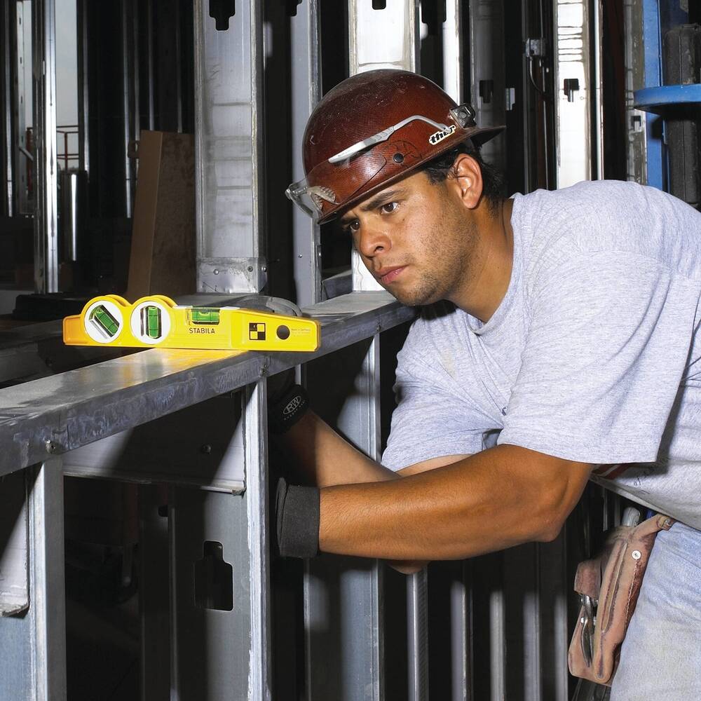 Contractors that work with steel frequently want to have both hands free to position, fit, adjust and align metal materials. Rare earth magnets are a must. With its milled measuring surface and V-groove, it holds firmly on all steel materials, even round surfaces. This level has a vial that will measure horizontal/level with gradients of 1% and 2%, a vertical/plumb vial and a third 45 degree vial . This level is practical, precise, convenient, and robustly built.
