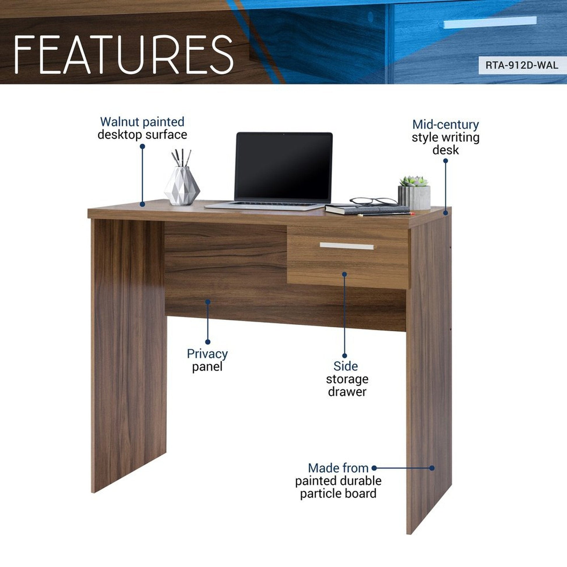 Techni Mobili Modern Computer Writing Desk with Drawer, Walnut by Level Up Desks
