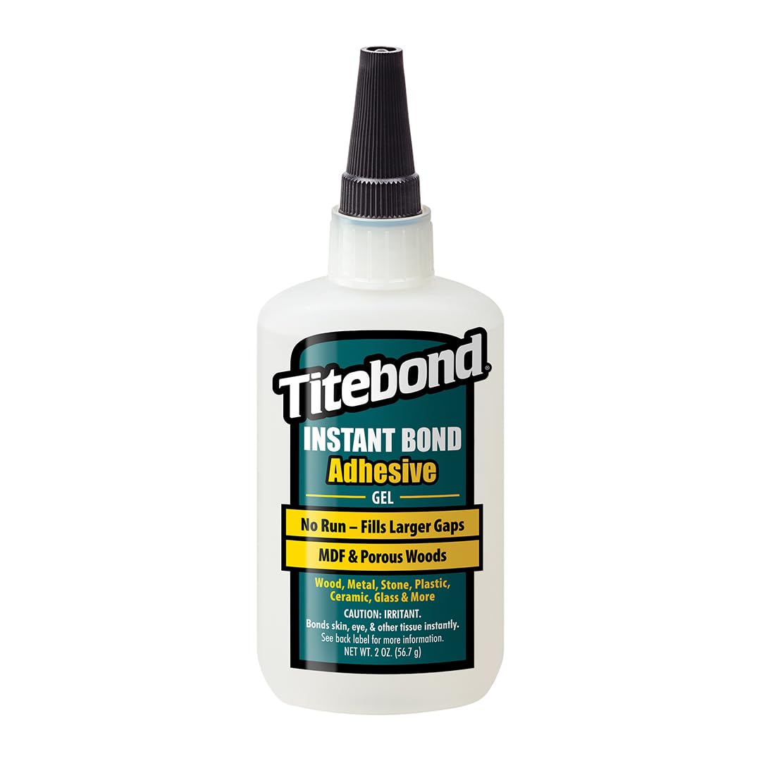 Titebond Instant Bond is a two-part bonding system that takes between 5 - 15 seconds to set and 30 - 60 seconds for initial cure. It provides a strong, permanent bond and is ideal for hard to reach joints or surface areas that are difficult to clamp. Designed primarily for wood and wood products, this adhesive is also very effective on a wide variety of materials and substrates. Titebond Instant Bond Gel viscosity product offers the longest assembly time of 30 seconds and an initial cure speed of 20 seconds. It is ideal for gap-filling applications, gluing porous and odd-shaped surfaces and various cabinet making applications, such as pre-bonding moldings to install as one unit.