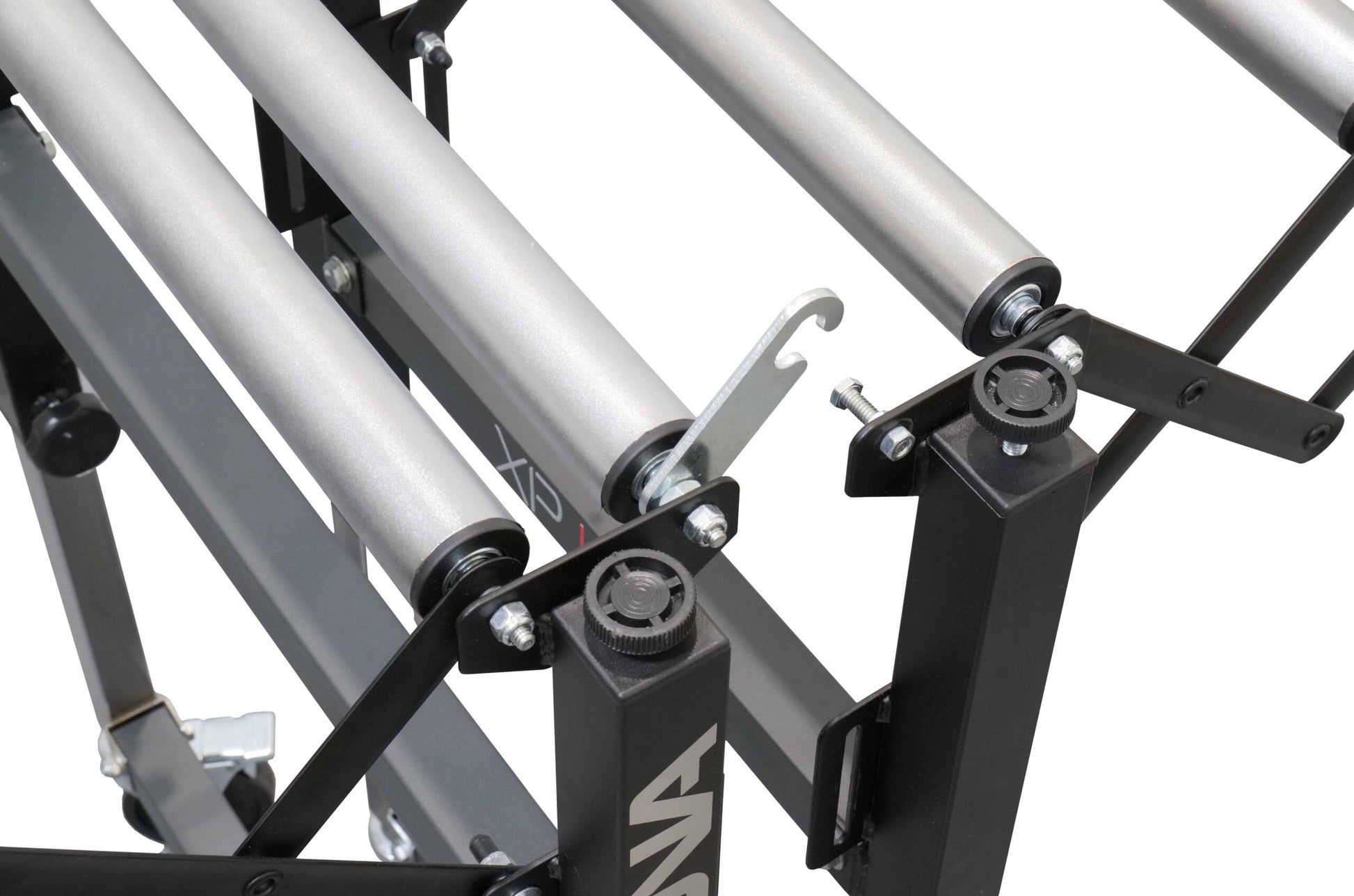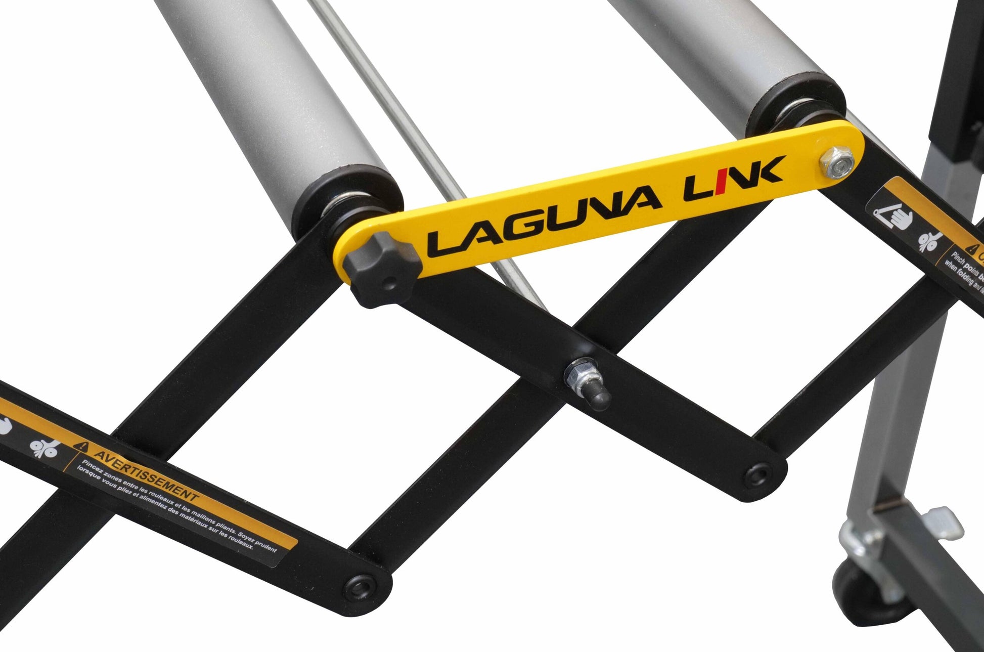 The new roller table boasts 4″ locking casters for superior stability and maneuverability, and a taller range to accommodate various bandsaw models. Its matte-finished rollers reduce friction and enhance durability. Laguna Link technology prevents sagging, ensuring consistent support during heavy use. Four corner knobs allow quick transformation into a support table, adding versatility. Double crossbars enhance rigidity and stability, minimizing vibrations and maximizing accuracy.